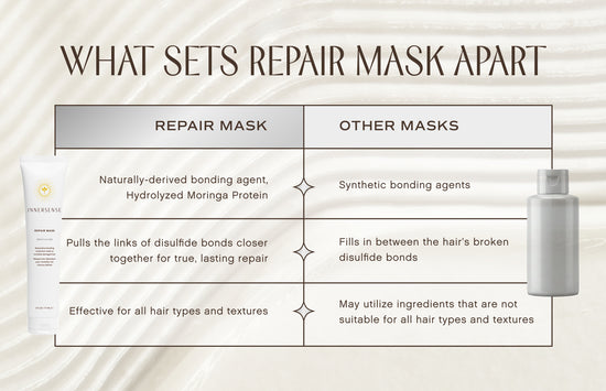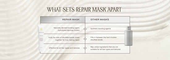 ✦ Address repair at every level. Unlike other treatments that only repair by filling broken bonds, Hydrolyzed Moringa Protein helps reduce the cysteic acid that accumulates when hair is damaged, and bonds to the keratin protein sites, allowing the links of the disulfide bond to be pulled closer together for true, lasting repair.